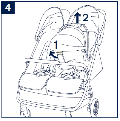 - Place the infant carrier on the stroller so it sits over the armbar.