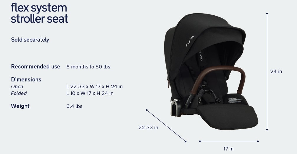 You can further the use of the Flex system frame by purchasing the Stroller seat. The seat will retail at $275, which brings the entire system to $925 which puts the cost between the Nuna Pipa URBN + TRVL LX bundle at $900 and the next option of the Nuna Pipa URBN + TRIV Next bundle at $1380.