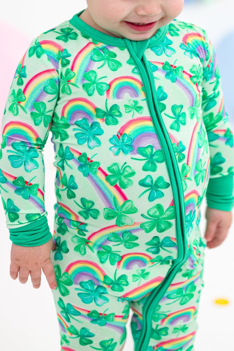 Romper or footie? Why not have both? You will love the option and ease of turning your little one’s Murphy romper into a footie! Birdie Bean convertible rompers come with a 2-way zipper feature that makes diaper changes a breeze. Printed on irresistibly soft viscose from bamboo with just a touch of spandex. The perfect combination of cuteness and comfort!