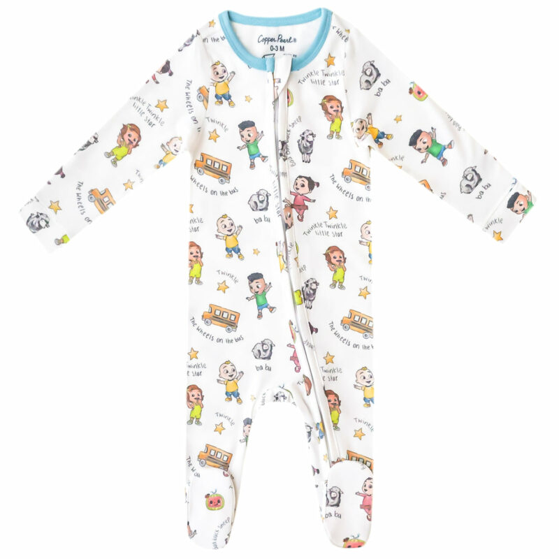 Classic footie pajamas in prints you’ll love. Copper Pearl has dreamed up the perfect footie pajamas, featuring buttery soft fabric, a tag-free design, and a two-way zipper for easy changing. Pick your favorite Copper Pearl print for a stylish night’s sleep!