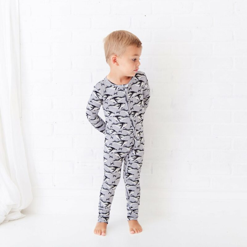 The Whale Hello There bamboo viscose zippy is designed to last twice as long as the average footie, due to the extra length and super stretchy fabric. And the best part, this convertible footie is made up to size 4T so your toddler and baby can match!