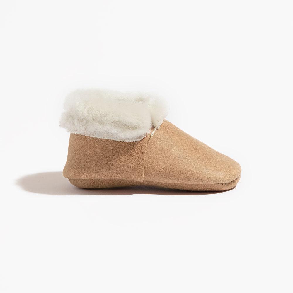 Just when you thought Freshly Picked moccs couldn’t get anymore comfy… think again! This moccasin includes our buttery soft genuine Weathered Brown leather, topped with the coziest and cutest fur collar. Keep your babe warm this season!