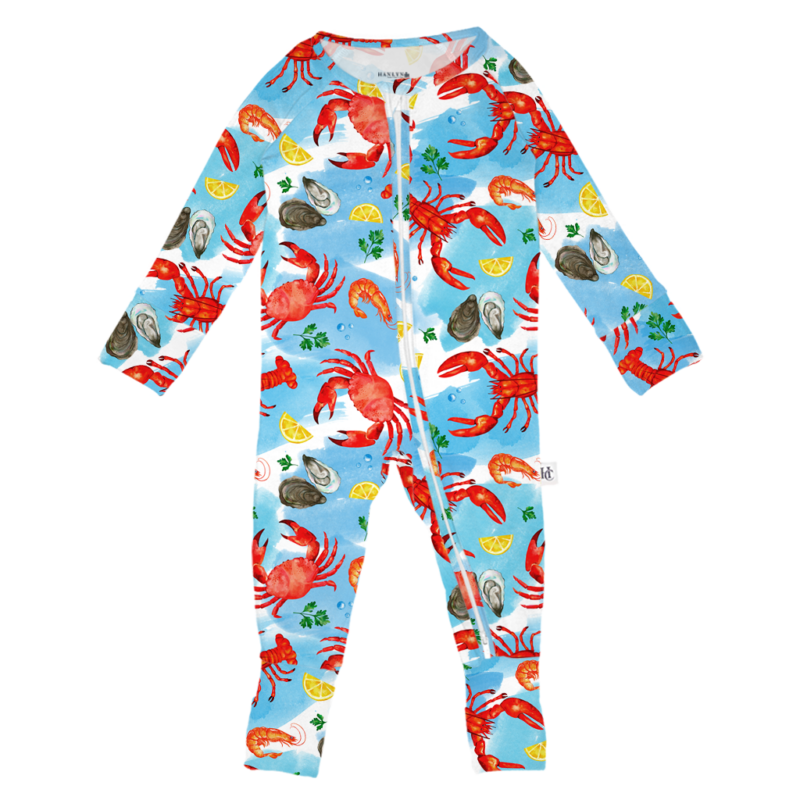 Hanlyn Collective’s insanely soft, eco-friendly Don’t Worry Be Crabby Bamboo Lyocell Rompsie was designed to make your little both fashionable and comfortable. The two-way zipper makes changing diapers hassle free, and runs from the top of the outfit to the ankle. No snaps, buttons, or interior tags, easy for both you and your little! One of the best parts of the Don’t Worry Be Crabby Rompsie is convertible hand and feet cuffs- transforming a footie into a romper in no time! The hand cuffs (up to 3-6 Months) act as mittens and the feet cuffs (all ages) fold over and can be used as socks.