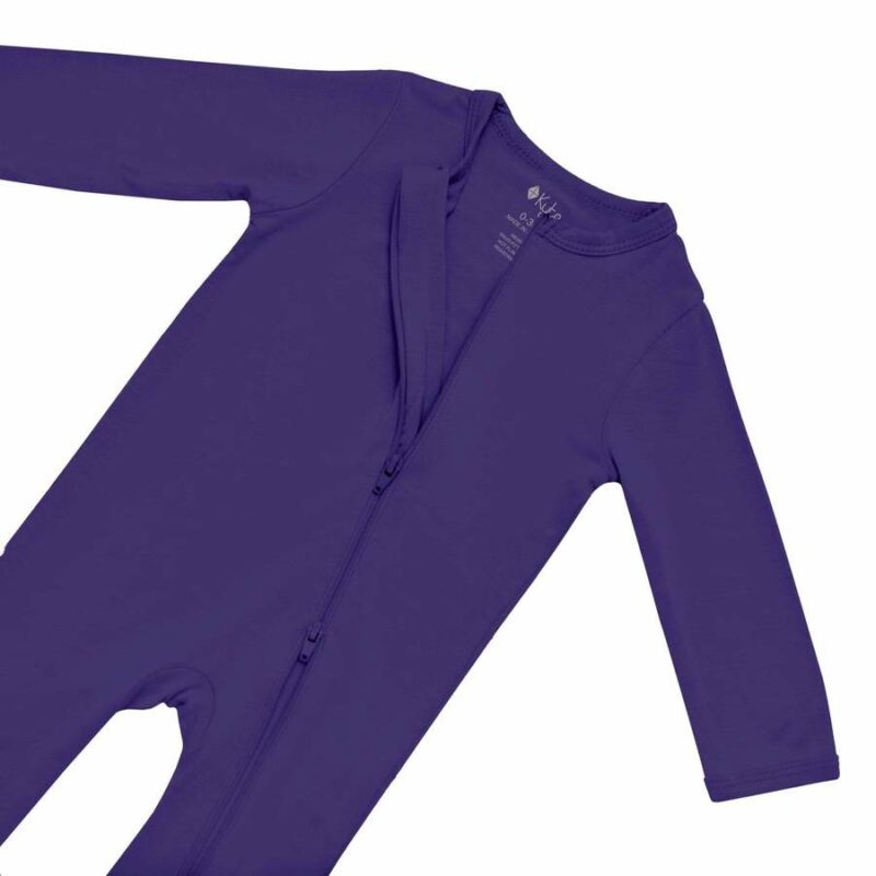 Made of ultra-soft bamboo, Kyte Baby Zippered Romper in Eggplant is perfect for babies to explore with their little toes and keep those tootsies cool day or night. The addition of a little spandex gives just the right amount of stretch to be comfy without permanently stretching necklines or cuffs. Don’t bother messing around with a wiggly baby or toddler and snaps! The two-way zipper zips from the top and bottom, making diaper checks and changes easy without completely undressing your baby. Mix and match with other Kyte solids and prints!