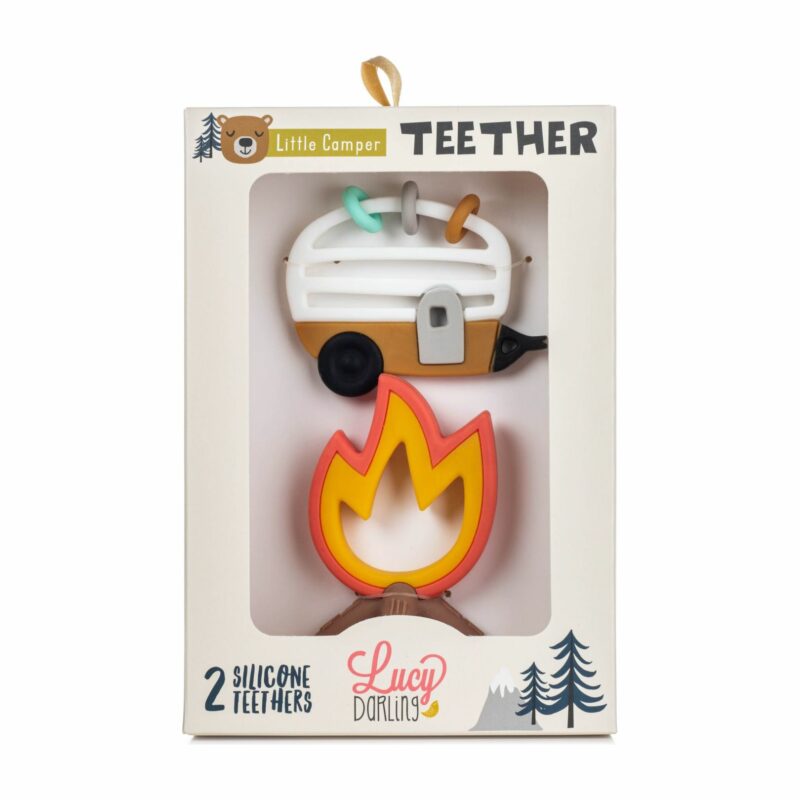 Go camping with this Lucy Darling Little Camper Teether Toy. Teaching your child to be curious about the world around them starts at the very beginning! Lucy Darling’s Little Camper chewable teethers ignite the wonder of childhood and allow your baby to explore using all his or her senses. The gum-soothing, soft- textured, campfire, and camper teether toy are simple fun your child won’t want to put down. Comes with two soothing teether toys.