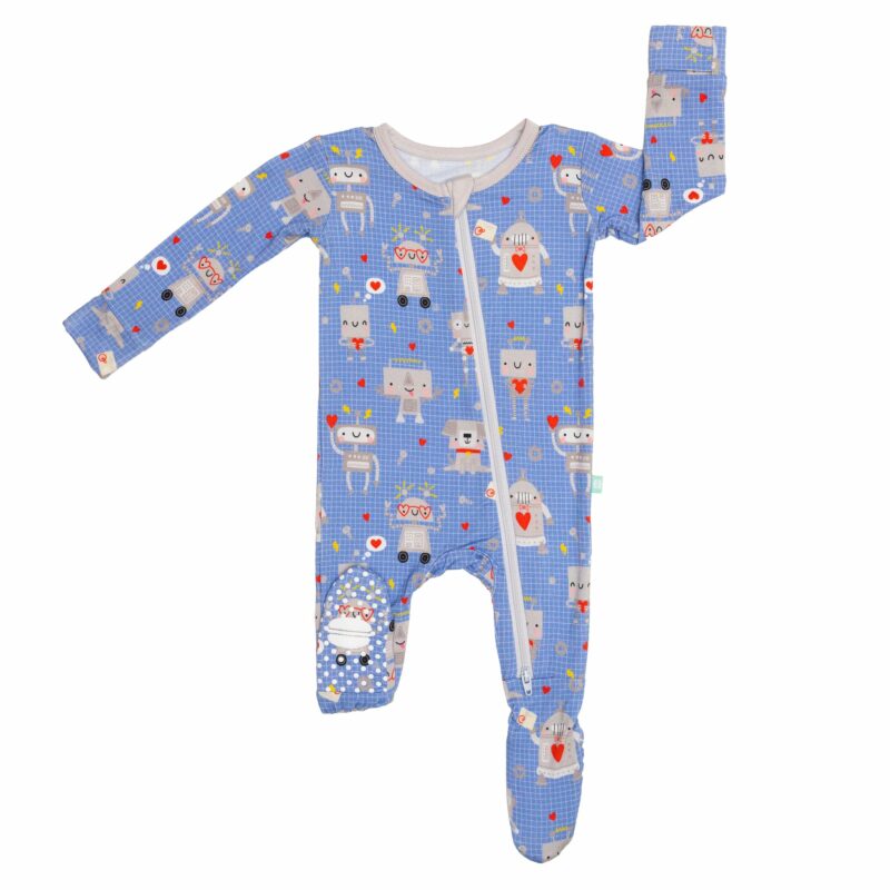 Macaron + Me footed pajamas like LuvBots Valentine’s footsies are fit to perfection and made with the finest eco-friendly bamboo viscose fabric that is both incredibly soft and breathable. These bamboo footies include a non-slip grip footie design that is fleece-lined! Sizes 0-9 months offer a relaxed fit for baby’s comfort, sizes 9 months and older meets snug fit guidelines for children’s sleepwear not treated with flame retardant chemicals. Perfect for sleep, play, and travel; each item is uniquely cut and will not look the same.