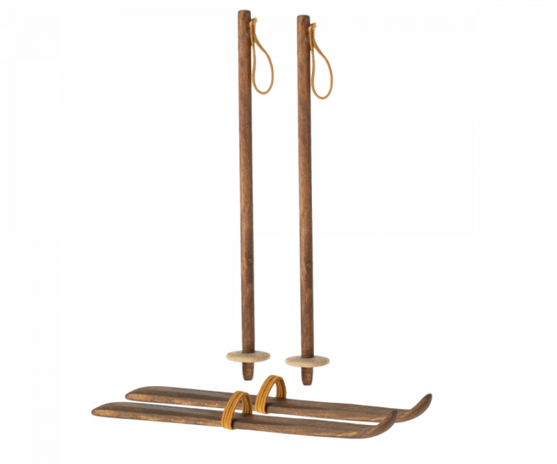 The perfect winter activity in the snow. With this set your mice can have a lovely day on the slopes. Ski and poles are made in wood and the elastic band makes it easy to fasten on mouse feet and paws. Fits Mum and Dad size mice.