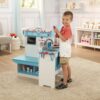 This sturdy, multi-sided wooden play space has everything kids need to role play visits to the doctor’s office! Kids can be the patient or the doctor, the receptionist, or the nurse. It’s a great way to ease kids’ fears about doctor visits and to encourage nurturing and empathetic play. The waiting area includes a seat, clock, and fun changeable artwork. Sign in and check out with a credit card reader and card, fill out a reusable patient file, and take appointments with the wooden play phone. Wash up in the sink, display X-rays, monitor blood pressure, tip the scale, measure height, and read the eye chart. There’s plenty of storage in this easy to assemble play space (illustrated instructions included; Phillips head screwdriver required). Standing 35.5″ x 37.25″ x 21.25″, there’s also plenty of room for imaginations to grow!