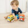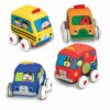 Wheel them back to get new skills speeding ahead! The “rev up” mechanism inside each of these four cars and trucks makes it easy for babies and toddlers to get big acceleration with just a little input: Pull back one of the soft vehicles–then release to see it zoom off across the floor! The action of grasping and pulling back is great for fine motor skills and hand-eye coordination; the activity of “driving” and collecting (pull, release, crawl) benefits large muscle groups and coordination, too. Get even more “miles per gallon” with a variety of colors, shapes and sizes, illustrated characters, and everyday themes to inspire conversations, cognitive connections, and imaginative play! These soft fabric vehicles are bound to be popular at playtime, but with four exciting vehicles there are enough to share. And parents and caregivers will be grateful for the removable wipe-clean wheelie insert and washable fabric surface! Melissa & Doug K’s Kids toys nurture early childhood development in three key skill areas: physical, cognitive, and social. With interactive designs and multisensory features, K’s Kids promotes constructive play and effortless learning, keeping interest high and new skills flourishing throughout the baby and toddler years!
