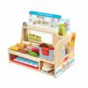 Create piled-high sandwiches, made to order with this wooden sandwich counter play set with all the fixin’s! The sturdy wooden deli counter includes a play meat and cheese slicer for the wooden play food, and felt sandwich roll and toppings to create sandwiches ordered from the menu. There is a wooden dressing bottle, play snacks, and a cup with drink insert to round out meals that customers can pay for with the included play money! An illustrated guide helps with sandwich prep and shows kids how to use the slicer. All 52 pieces store in the sandwich counter for easy cleanup. It’s a deliciously fun way to encourage counting, sorting, and fine motor skills, as well as imaginative play and storytelling. This product is certified by the Forest Stewardship Council. FSC certification ensures that products come from responsibly managed forests that provide environmental, social, and economic benefits, and that forests are protected for future generations.