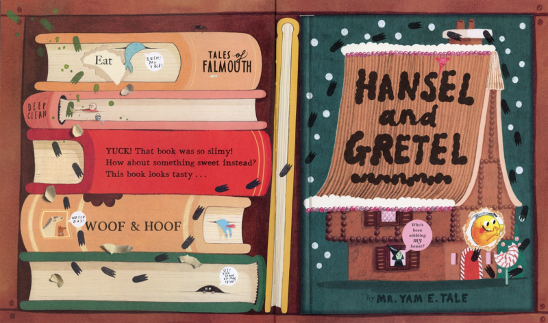Follow Nibbles the Book Monster as he chomps his way through the library! The first book he munches into is too slimy, the next book is too sweet, and the final book is too stinky. Poor Nibbles. But then he returns to a very familiar looking book . . . THIS BOOK! Oh no, Nibbles!