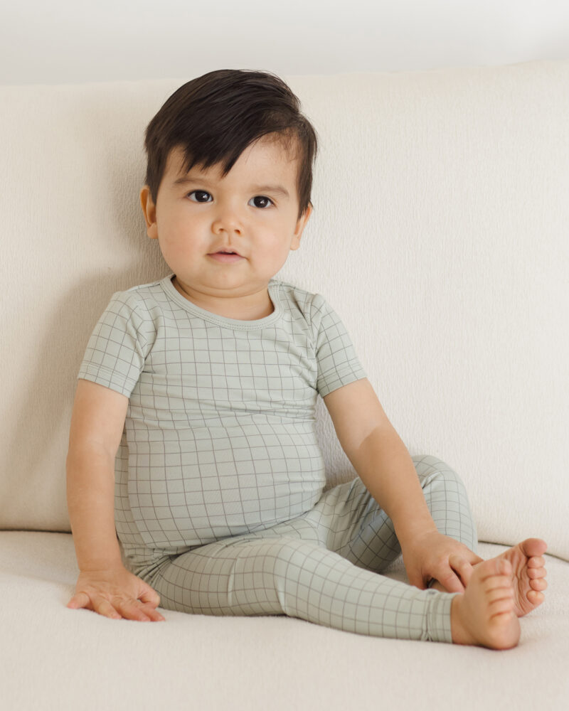Short sleeve tee and leggings in soft bamboo fabric. Designed with a slim fit with added stretch to grow with your baby.