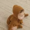 Master being stylish and cosy with this adorable Knit Bonnet in Walnut by Quincy Mae. The organic cotton is extra-soft so that you little one will be comfortable. The bonnet features a sweater knit and ties for extra style! Pair with Quincy Mae Knit Dalia Romper in Walnut.