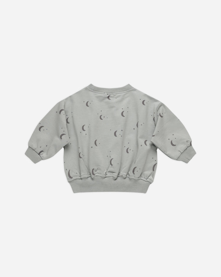 Relaxed fit sweatshirt made of the coziest fleece fabric. This sweatshirt has gathered knit cuffs and bottom opening.