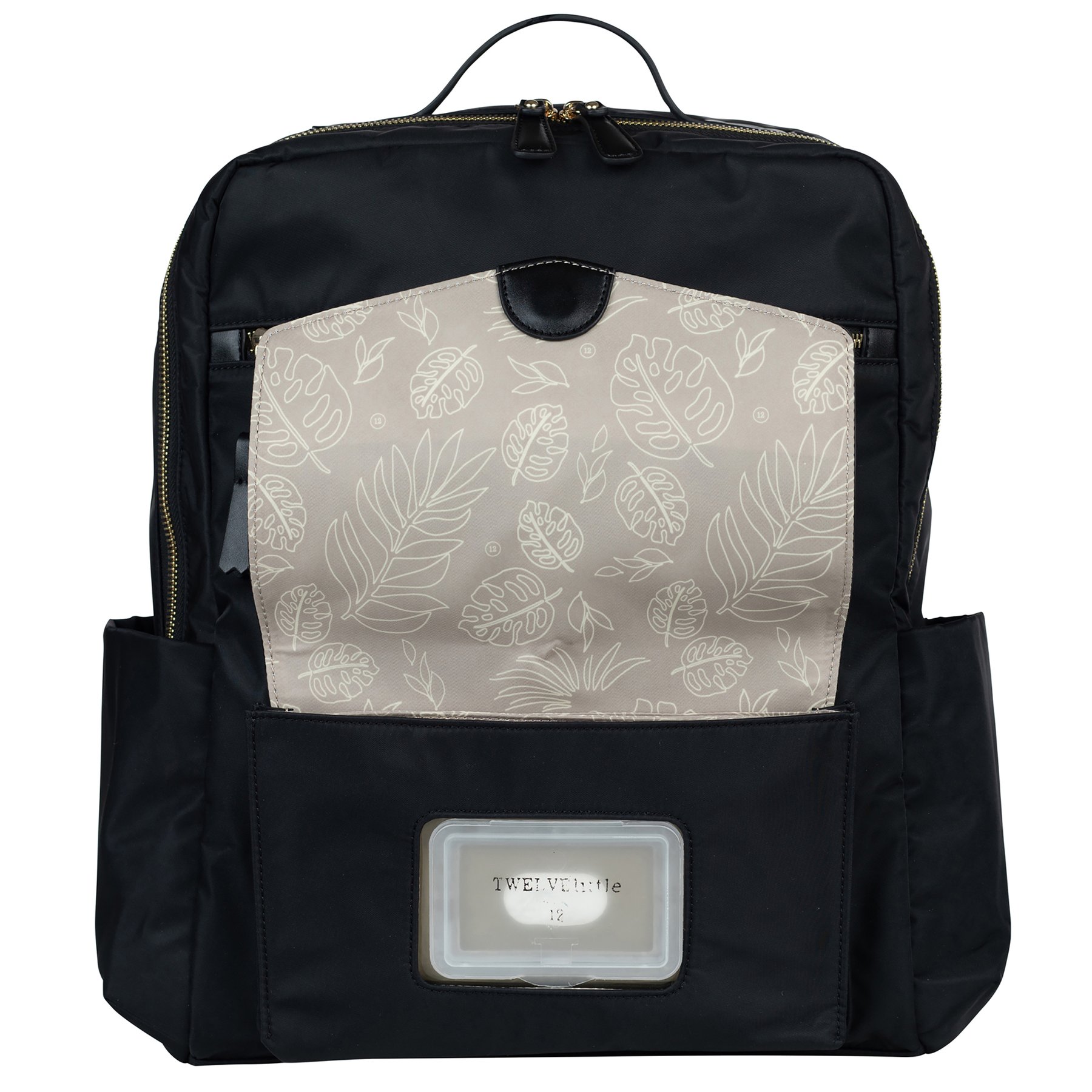 Designed for style-savvy moms, the TwelveLittle Peek-A-Boo Backpack can be used during the diapering stage and beyond. The simple design of the exterior makes the backpack both timeless and transitional from season to season, while the interior features multiple pockets to make organization easy. Whether you plan on using the backpack for diapers, travels, work—or all the above—its versatility makes it easy to carry as your everyday bag. And don’t forget to take a ‘PEEK’ at what’s under the front flap: you’ll find a pocket specifically designed to fit a pack of baby wipes and an opening to easily pull out a wipe when needed. But if you’d rather use the space to hold other stuff, simply adjust the orientation of the inner flap (and voilà!) turn it into a regular pocket for your mommy goods.